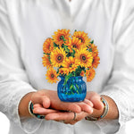 Bright, bold, and mini: FreshCut Paper’s Van Gogh inspired, unwilting sunflowers cheer every room, teaming with positivity and joy. The bodacious bouquet features an elevated design of bursting sunflowers in an understated and elegant blue, glass vase. Sunflowers represent adoration, loyalty, and longevity, making this adorable arrangement the perfect pick-me-up during life’s stormy weather, or a joyful reminder for those already shining.