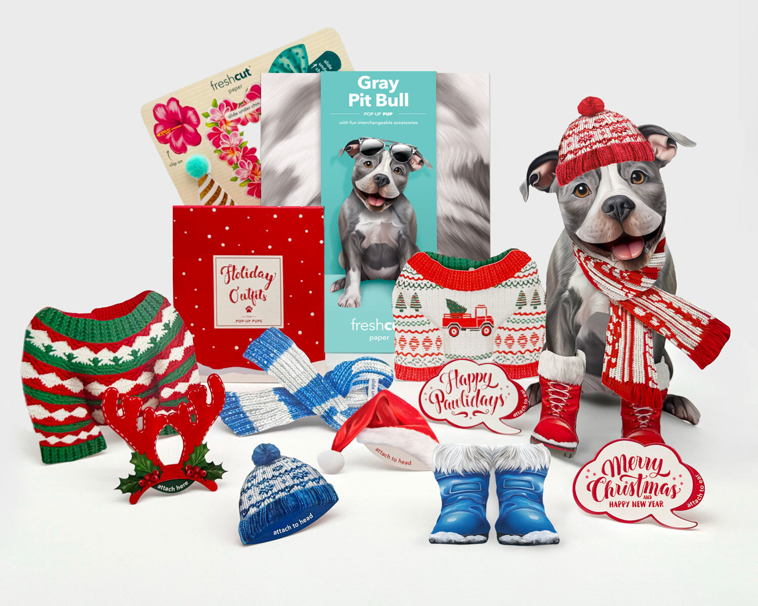 Show them just how much you woof them this holiday season with an adorable Pop-Up Pit Bull! Everyone’s favorite nanny dog is here to spread festive cheer with its gorgeous grey fur and adoring eyes. The Pop-Up Pit Bull comes complete with a matching notecard, a mailing envelope, and evergreen and playful holiday accessories that’ll make tails wag with joy. You can add your own paw-sitively delightful holiday message with a customizable speech bubble.
