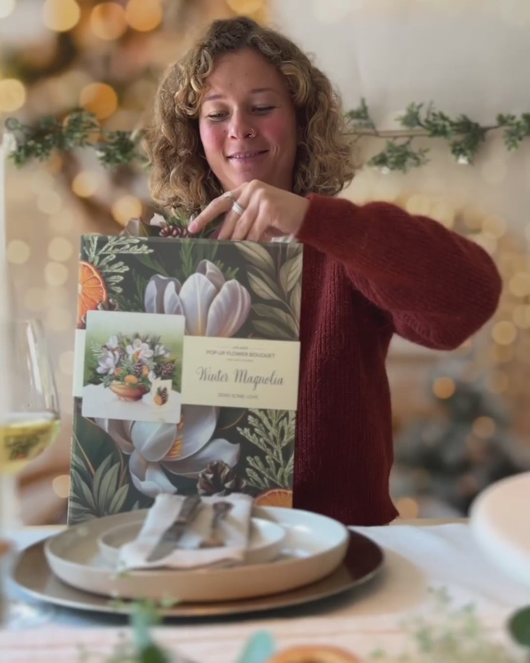 From winter’s first snowfall to the ball drop of the New Year, the always-elegant Winter Magnolia is an ideal centerpiece for cozy meals at home or festive family events. A beloved symbol of luck and perseverance, these grand and gorgeous magnolias sit pretty alongside dried orange slices, pine cones, and an assortment of yuletide greeneries. A textured wooden bowl gives an artisanal touch and adds a layer of sophisticated rusticity to the exquisite bouquet. Share the magic of the winter season with a botanical spectacle of blooming magnolias.